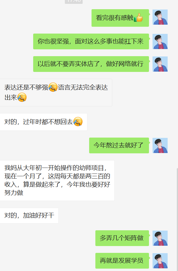 这也让我意识到,自己做事的意义和价值,能够让一个人面临困境,改变一家人的生活,还是一件欣慰的事情。