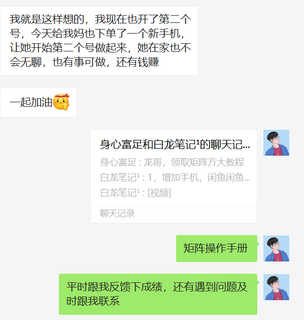不过还是稳妥起见,我让他妈妈再起一个号,毕竟矩阵操作,更加稳定。