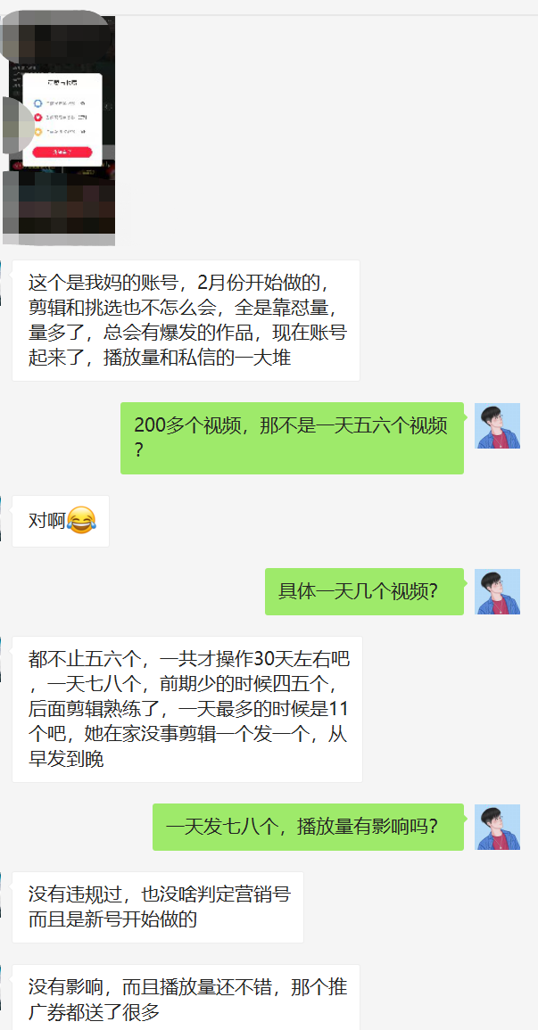 2月份开始发视频,一个月发了200多个视频,也就是一天要怼七八条以上,小川说最多的,一天也要发10多条视频。