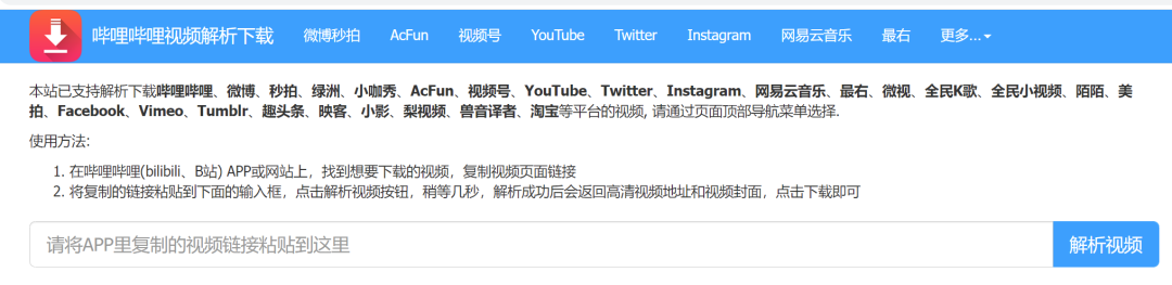 唧唧下载,或者https://bilibili.iiilab.com/,这个网站可以下载几乎主流网站的视频。