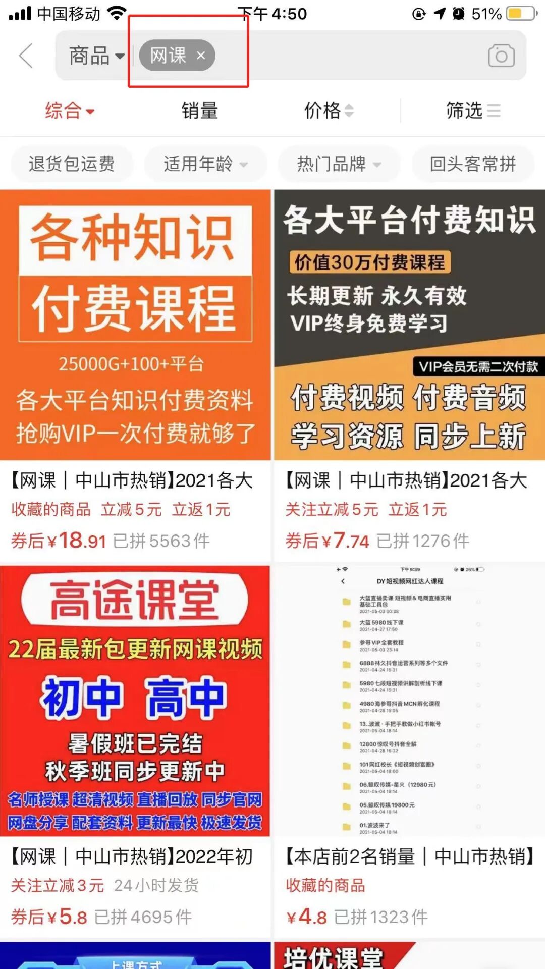 王五:万能的拼多多、闲鱼、淘宝,搜网课,几块钱一大堆。