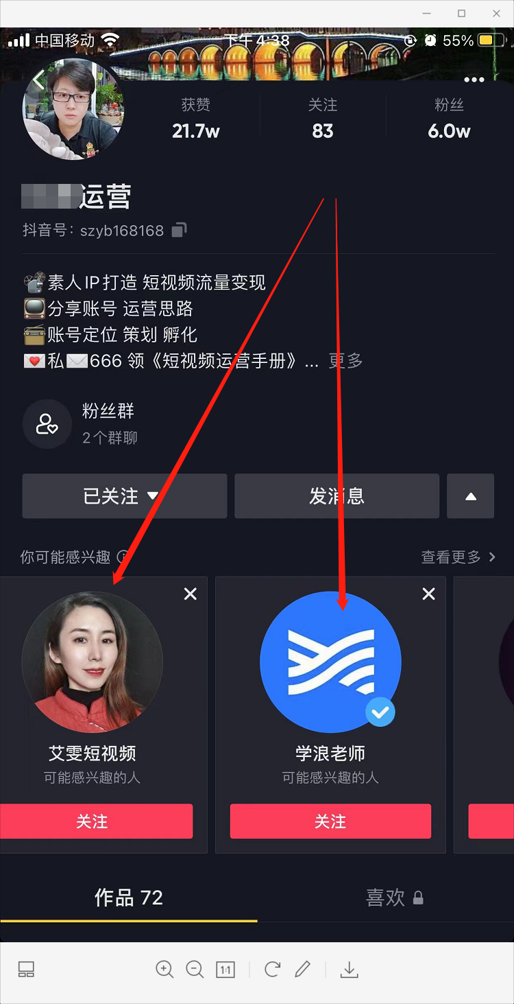 四、只刷这类知识类、创业类视频,刷到不相关的直接PASS,系统会给你推送同领域的视频,顺带把这些博主关注一遍。