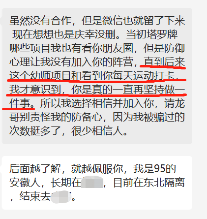 当时看了我朋友圈,还是对我挺不放心的,不过长时间看下来,2年的时间还在一直坚持着,他彻底佩服了。