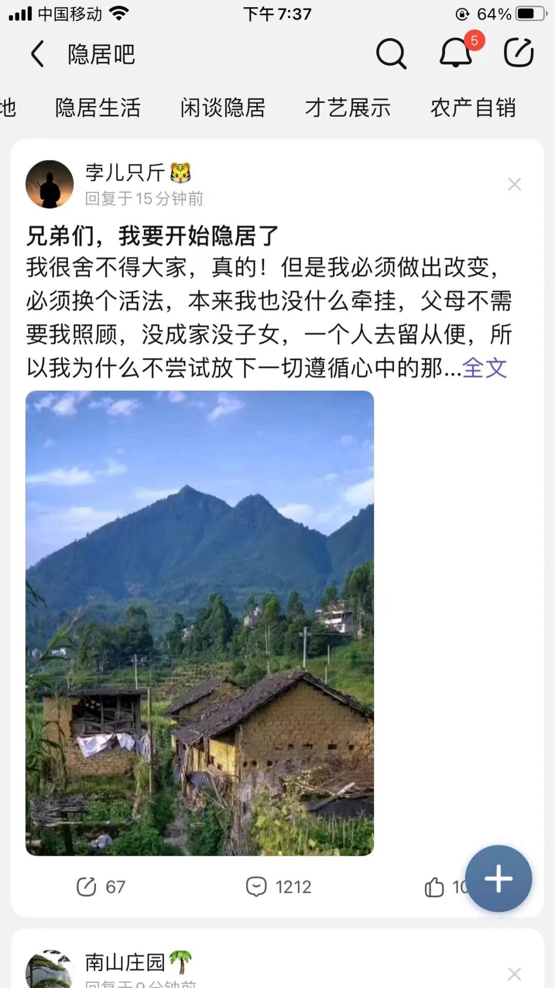 里面都是各种奇人,有去钟南山隐居的,有去山里买个破草屋的,有一边流浪一边租房的。