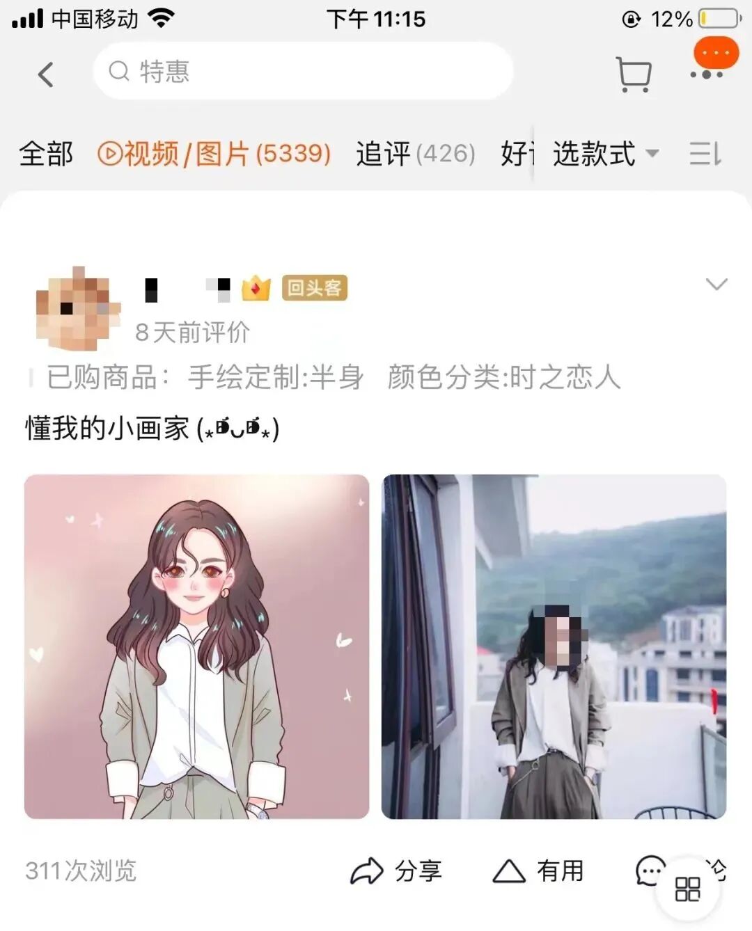 这就说到淘宝上的手绘头像店了,翻开评论区,很多卖家秀。