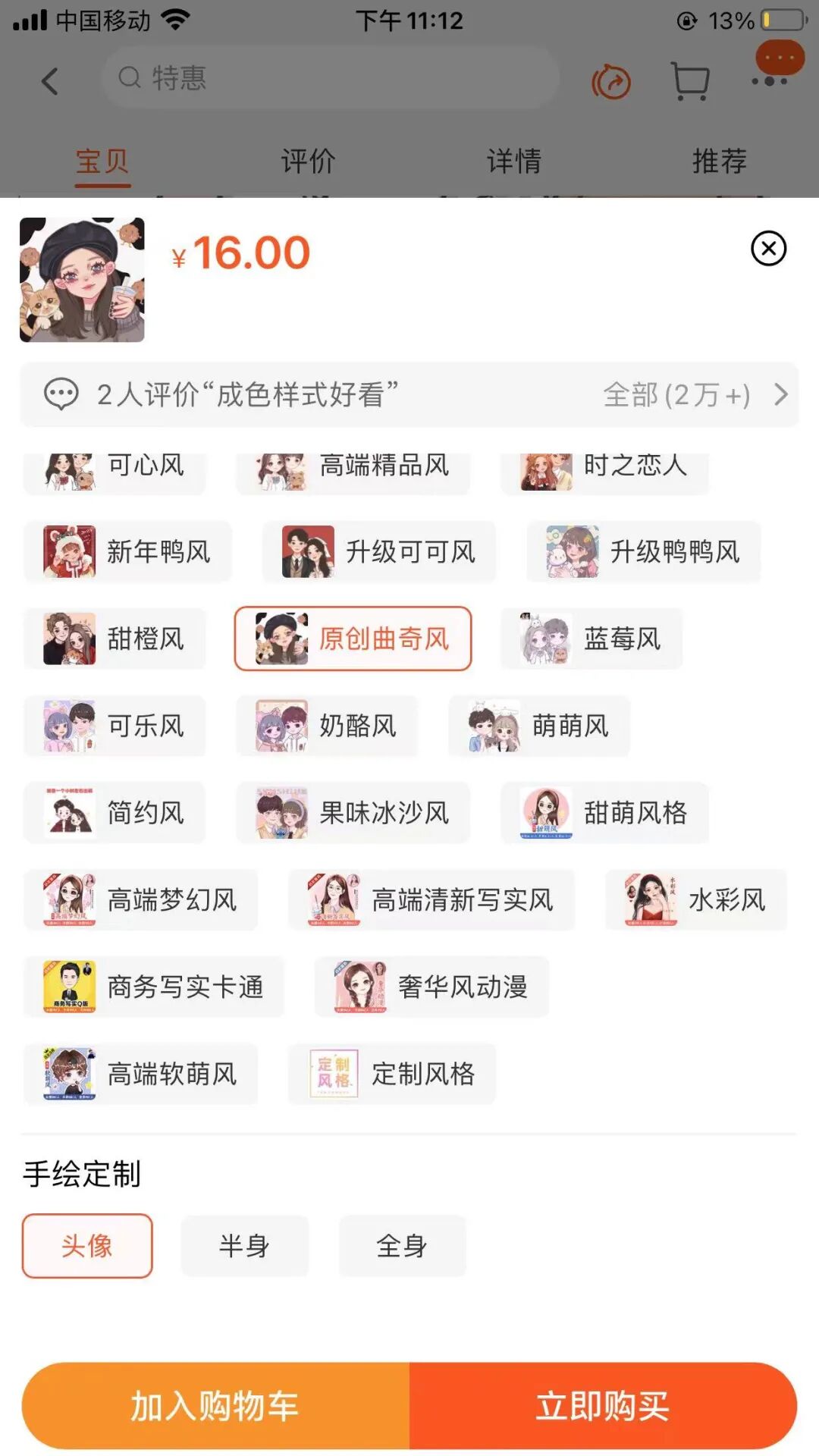 一是淘宝手绘头像店。