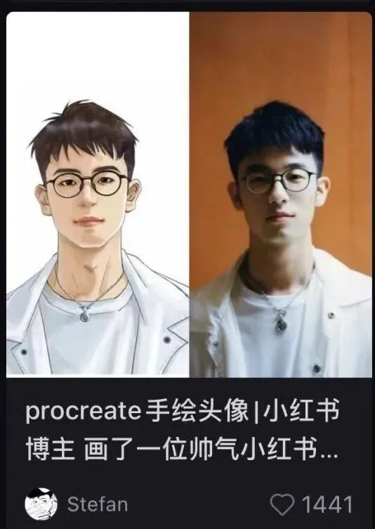 小红书上发手绘头像相关笔记,笔记以原图+手绘图的对比来展现,更能表现出头像变手绘的神奇效果。