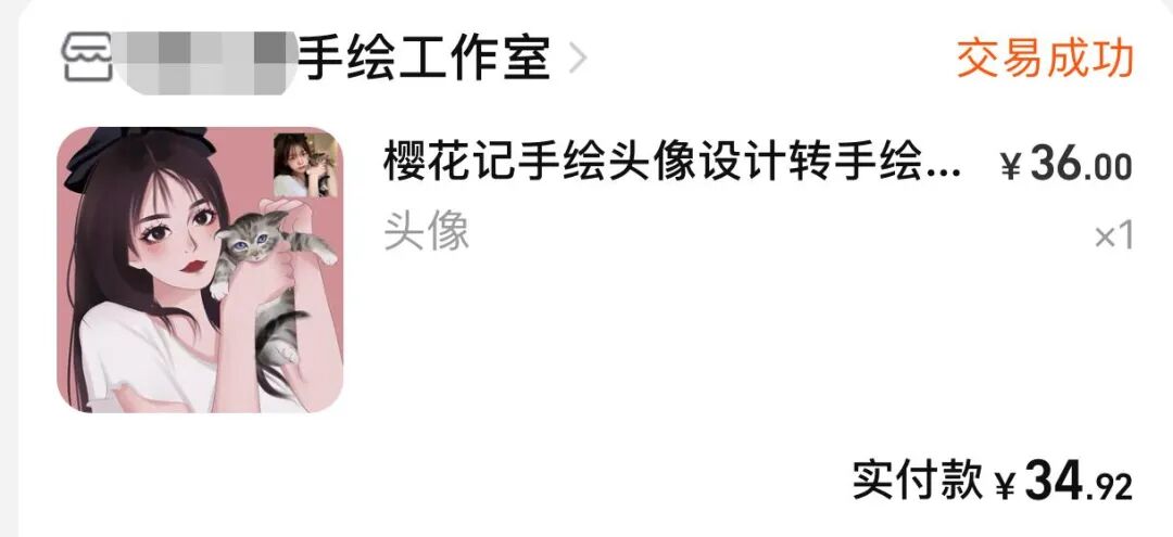 我想起了我自己的头像,是在淘宝上找画师弄的,花了36块钱。