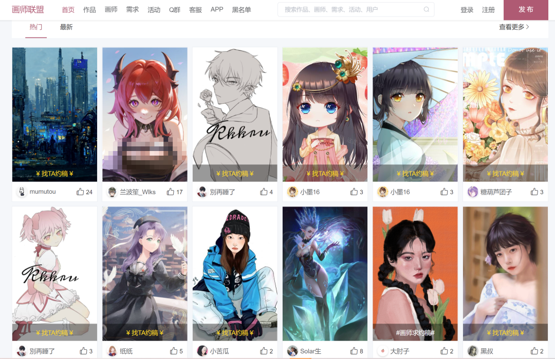 这些都是画师集合的专业网站,当然P站不是那个P站。
