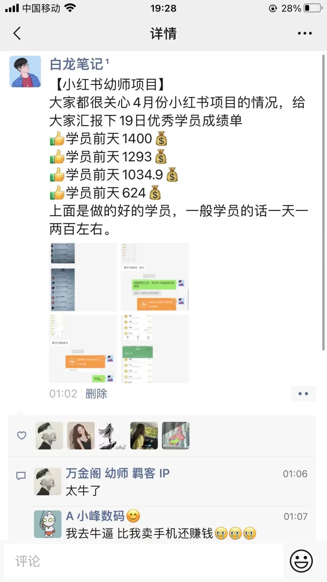 学员西瓜,做小红书幼师项目,前天达到了1400元的单日收益。