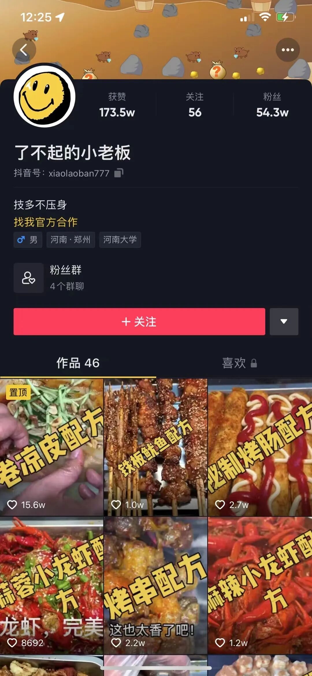 也有走长线的,有一个做卤菜的兄弟,他本身是大学生,不顾家人反对,跑去四川学做卤菜,学会了之后开了卤菜店,然后也是抖音拍视频,招学徒招加盟,一年上百万。这个路线好处是卤菜可以做一辈子,拍摄和教学都是自己掌控。坏处是周期比较长。