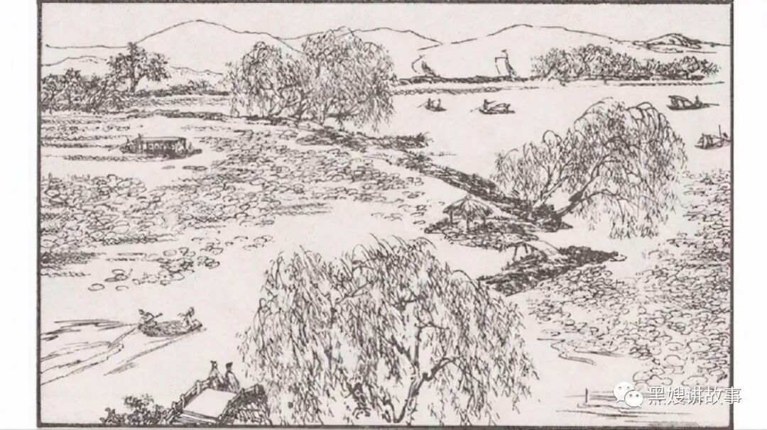 这一天天气阴沉,河岸边有不少人在游玩,河上大船小船穿流不息,柳河生想要把船行至一个僻静处捕鱼。