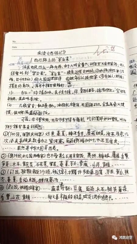 为了证明自己的观点,马思齐专门写了一篇名为《西行路上的“宴会菜”》的作文,统计出《西游记》里发生在不同地域环境和故事情节里的菜名。