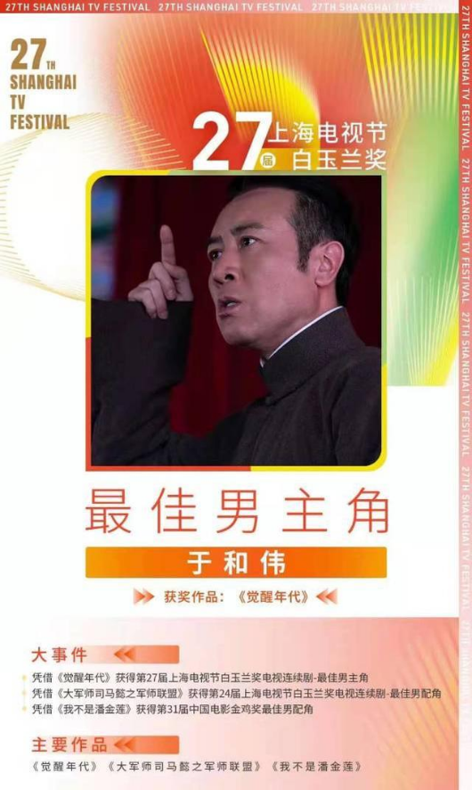 在今年6月,于和伟凭借《觉醒年代》中对陈独秀的精彩演绎荣获白玉兰最佳男主角的奖项。