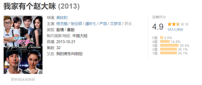更尴尬的是,这部剧目前在豆瓣仅有157人评价,说明看过的人根本就不多,这就把“黑红”之路都给堵死了。