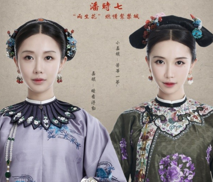 潘时七在剧中的戏份比较吃重,一人分饰两角饰演了一对双胞胎姐妹——大小嘉嫔。