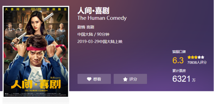 最终票房6321万,豆瓣评分3.3,甚至有网友表示“这不是人间喜剧,应该叫人间地狱”。
