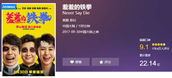 可在之前,有一部他主演的电影以22.13亿的票房超越了《夏洛特烦恼》。
