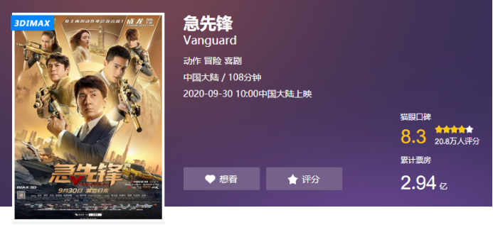 电影虽有成龙大哥加持,可现今的他已经没了年轻时的拼劲,再加上剧情老套、人物行为没有逻辑,种种因素下来,这部剧仅收获了4.5的评分。