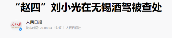 2020年8月,有媒体报道称演员刘小光疑似酒驾,在无锡被抓。