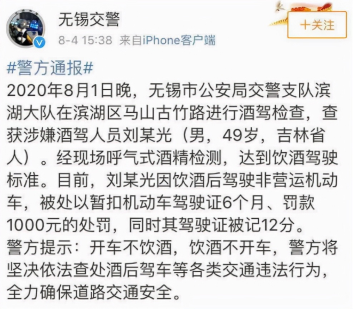 谁知刘小光求锤得锤,无锡警方发出了通报,官媒也印证了信息。