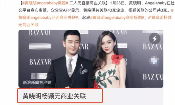 有网友发现,黄晓明共关联43家企业,杨颖共关联3家企业。