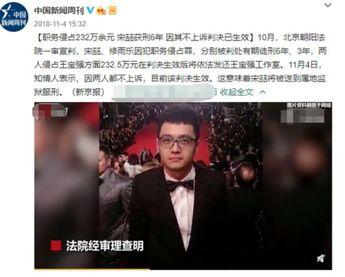 而马蓉的出轨对象宋喆,则因为涉嫌职务侵占罪被判有期徒刑6年。