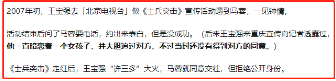 比较有意思的是,《士兵突击》将王宝强的职业生涯推向一个更高峰,同时给他带来了爱情。