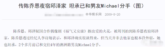 据说有一次邱泽生病,陈乔恩主动前往照顾,甚至留宿了几日,在这期间也与外籍男友Michael分手了。