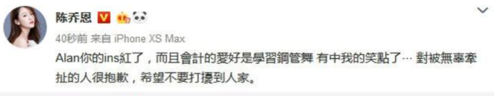 这个解释不管网友们信不信,总之陈乔恩是发文支持了艾伦的说法。