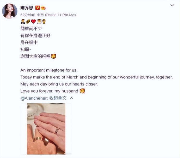 只是相比于事业,陈乔恩更加痴迷于爱情的甜蜜。