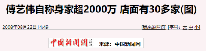 据说巅峰时期,傅艺伟的身家可以破亿。