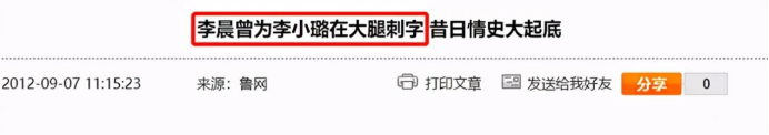 但是24岁的李晨有单属于那个年纪的示爱方式——他在大腿上纹了一个“璐”字。