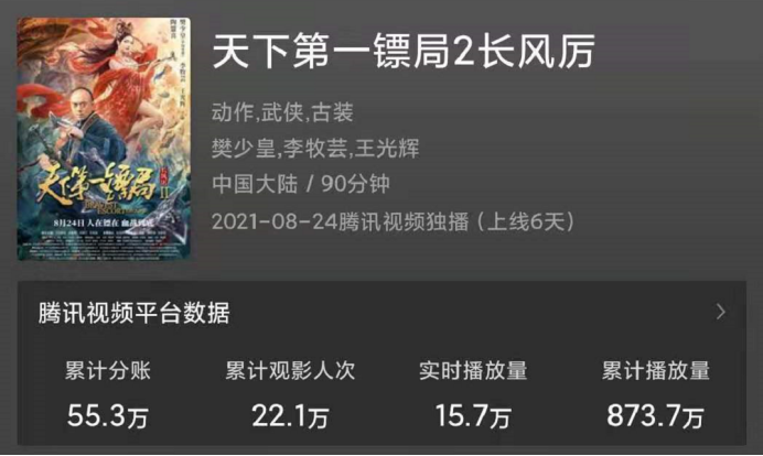 《天下第一镖局2长风厉》就是由樊少皇、王光辉等一系列看着眼熟却叫不出名字的演员主演的网络电影。