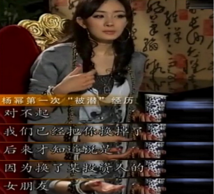 除此之外,杨幂因长相出众,又处于似红非红的状态,经常接到导演、制片人发来的潜规则信息。