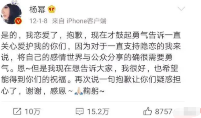 令人没想到的是,正值事业巅峰期的杨幂,突然官宣了恋情。