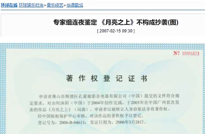 专家组连夜对两首歌曲做了审核,最后给出了不构成抄袭的鉴定。