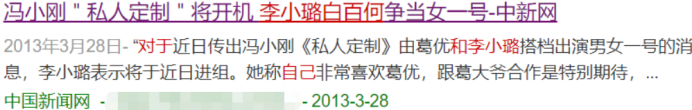 2013年,冯小刚在拍《私人订制》期间,传出了白百何与李小璐争当女一号的新闻。