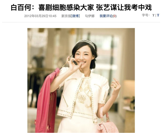 当时张艺谋正在为一部啤酒宣传片寻找女演员,没想到在中戏遇到了白百何。