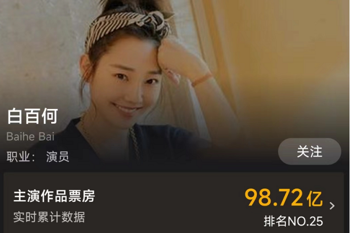 如果不出意外,白百何毫无疑问会成为国内首位票房过百亿的女明星。