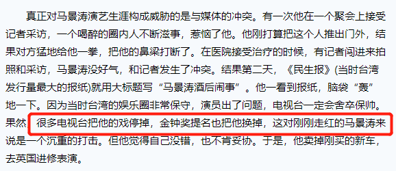 随后马景涛的各种片约都被停止,甚至金钟奖提名都把他换掉了。
