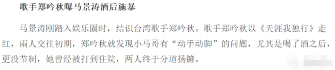 而他的其中一位前女友田丽,更是在采访直言不讳的表示“马景涛曾把前妻打进医院好几次”。