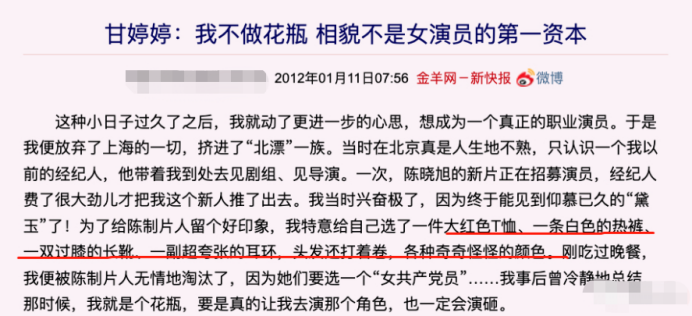那一刻甘婷婷明白了,相貌不再是最大的资本,成熟的作品和过人的演技才是导演真正需要的东西。