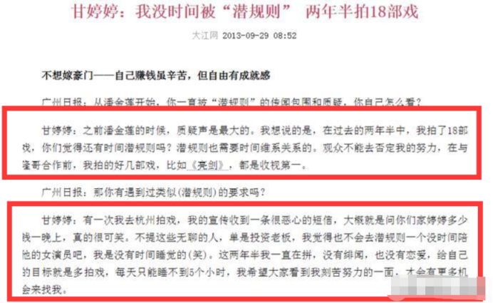 于是网上就开始传出她拿到这个角色是因为“潜规则”或“钱规则”。