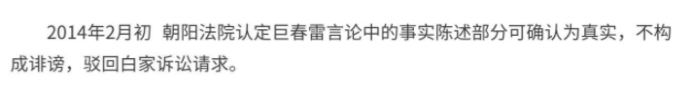 这起官司打了两年,法院认定巨春雷不构成诽谤,驳回白家的诉讼请求。