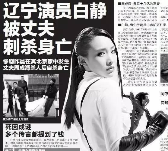 演员白静被富豪丈夫周成海连捅三刀当场身亡。