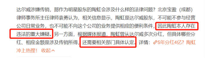 根据媒体报道,陶虹过去三年分红的2.6亿可能是传销阶段的收益。