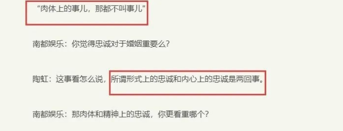 后来陶虹在接受采访时,更是直接表示“肉体上的事,那都不是事”。