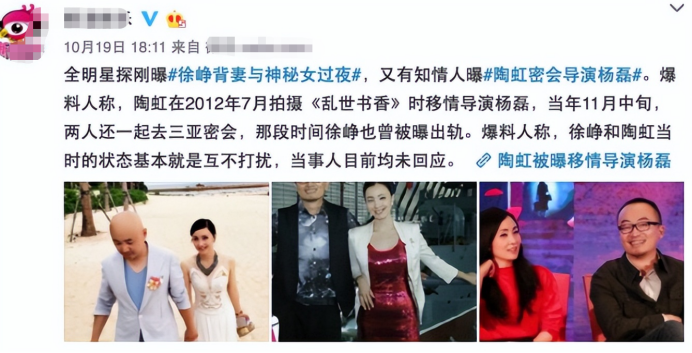 尤其在徐峥在被曝出与神秘女过夜时,又有人爆料陶虹密会导演杨磊。