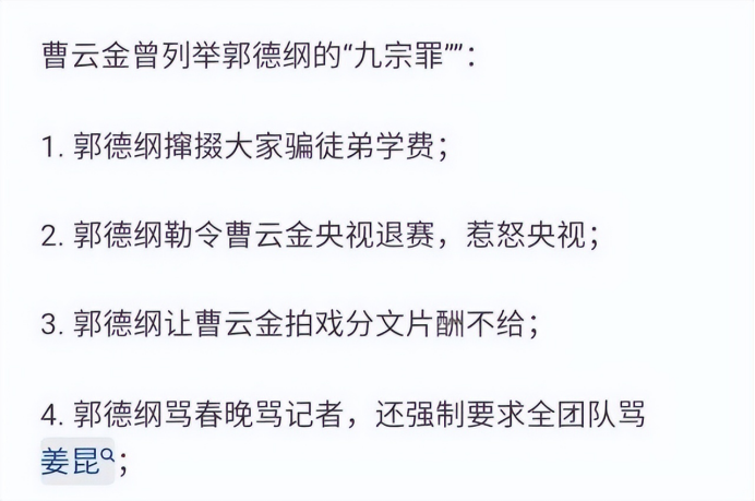 这成了师徒反目之后,曹云金抱怨郭德纲的原因之一。